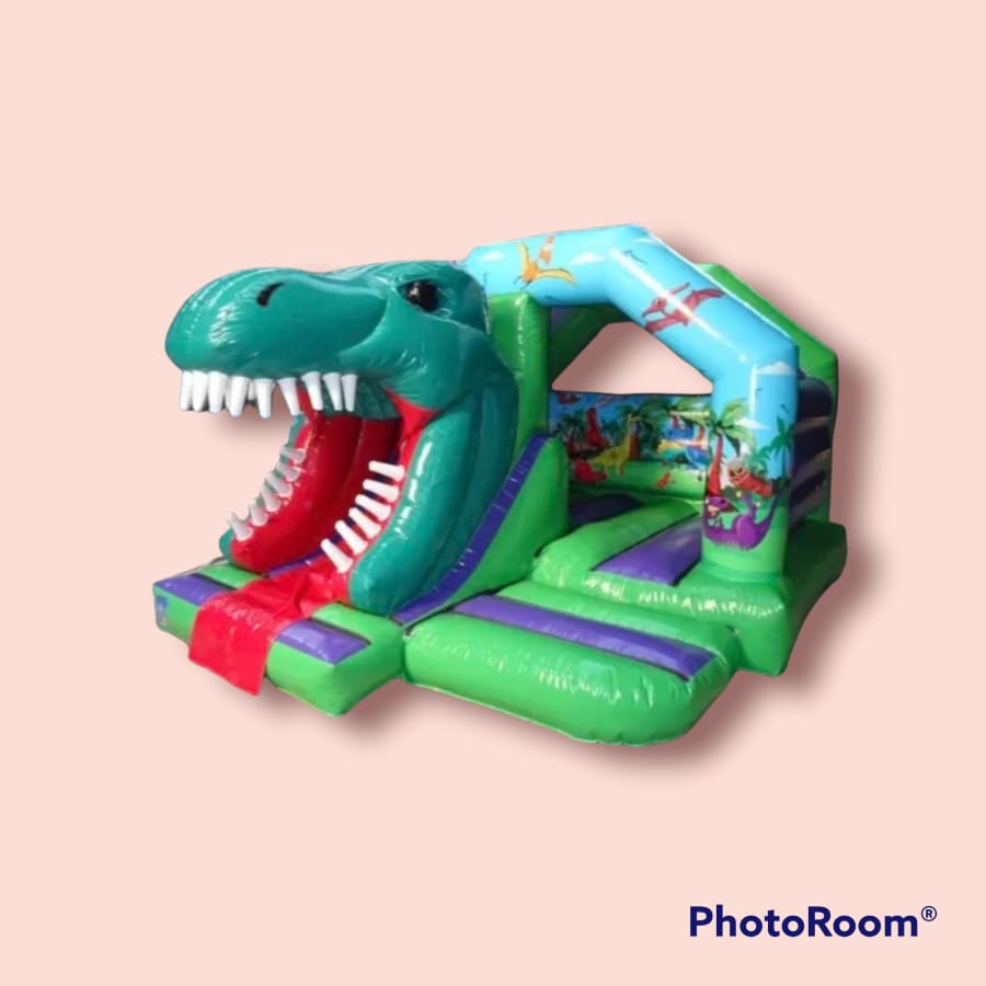 Our realistic dinosaur themed bouncy castle and slide combi is a fantastic addition for your childs party. Children will love being able to slide down the dinosaurs mouth.