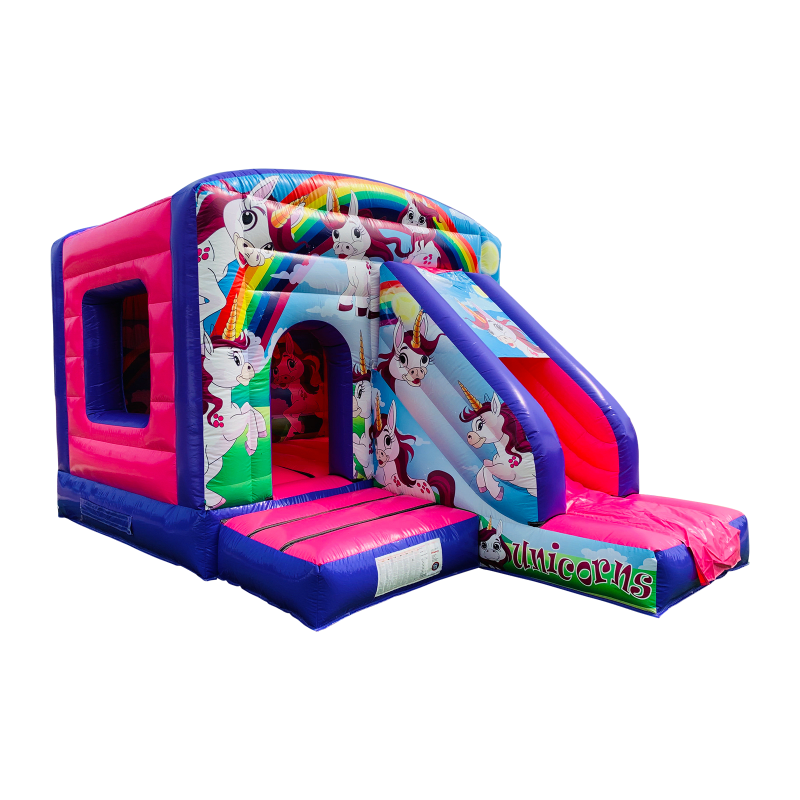 Bring a sprinkle of sparkle and a heap of hops to your next family event with our 12ft x 17ft Unicorn castle / slide combi. This bright, durable inflatable marries two party favourites — a roomy bouncing area and a 4ft slide — so kids can bounce, slide and squeal with delight without taking up a tonne of space. Perfect for birthday parties, village fetes, school events and backyard bashes across Ayrshire. π