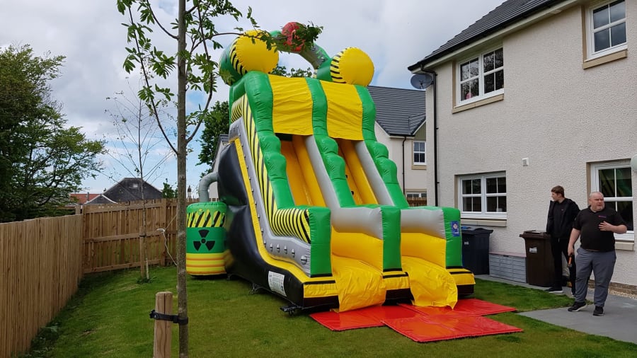 At West Coast Castles, we are proud to offer the Toxic Slide for delivery in Ayrshire and beyond. Whether you're located in Ayr, Kilmarnock, or anywhere else in the area, you can experience the thrill of the Toxic Slide at your next event. Our team will ensure a seamless delivery and setup, so you can focus on enjoying the fun.